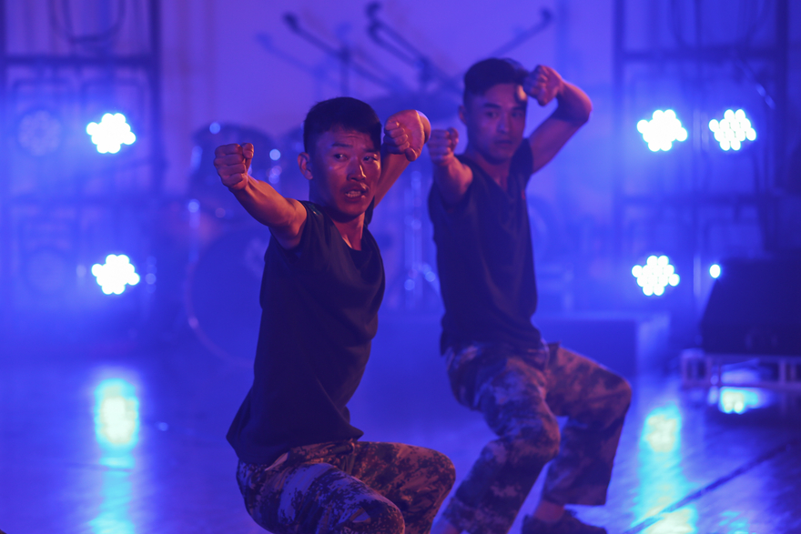 而最让人惊喜的,是教官悄悄为新生们准备的特别节目。他们英姿飒爽,充分展示了当代军人的风采。出拳、倒地、起身飞拳、反手勾拳……每一套动作都引起台下的“小绿人”声声叫好,全场的声浪被教官们的出场带到顶峰。