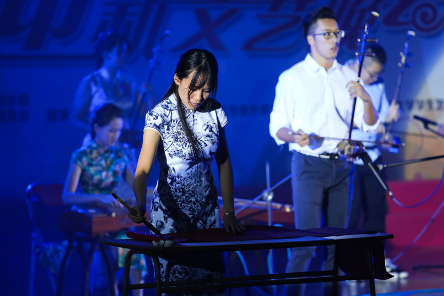 清脆跳动的银饰碰撞的声音开启第二篇章的表演,北校校艺术团舞队化身侗族的精灵,用曼妙的舞姿引领观众走进少数民族的艺术世界;南校校艺术团舞队则巧妙地将京剧用作背景音掺进舞蹈,舞者随音乐时而欢欣舞动,时而挣扎追寻,一舞者从众舞者背上缓缓滚落的那一幕扣人心弦,一舞《岁月如歌》将人生的喜怒哀乐演绎得淋漓尽致。