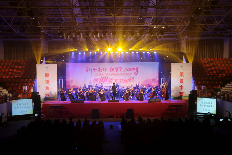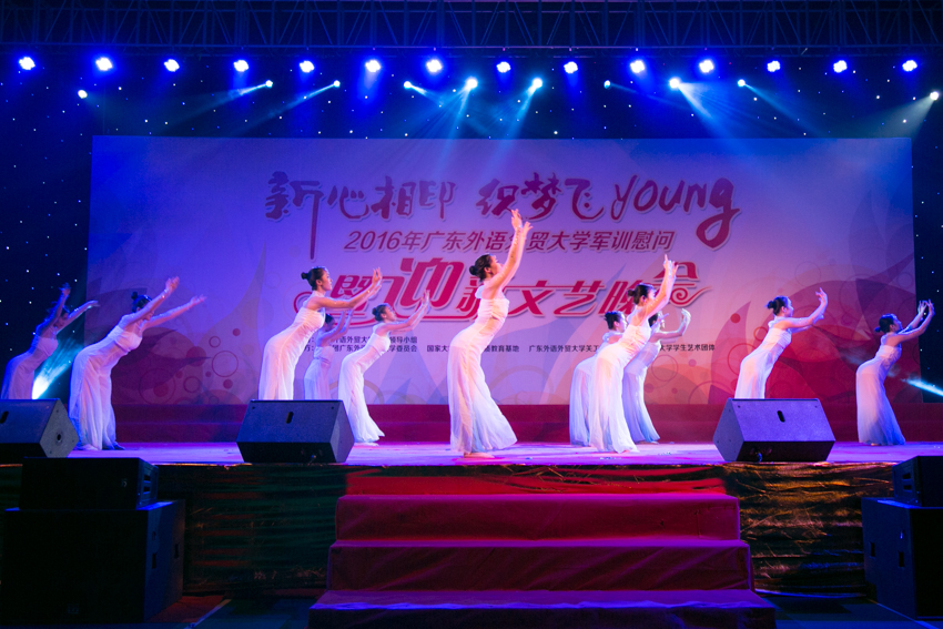 本网讯 9月7日和9日晚上,以“新心相印织梦飞YOUNG”为主题的2016军训慰问暨迎新文艺晚会分别在北南校区的体育馆举行。晚会由校军训领导小组主办,校艺术团体、校团委等单位承办,编织了一个梦幻的夜晚,诠释了伟德bv国际体育鲜明的国际化特色和勇于担当的广外人形象,为2016级新生送上美好祝愿。