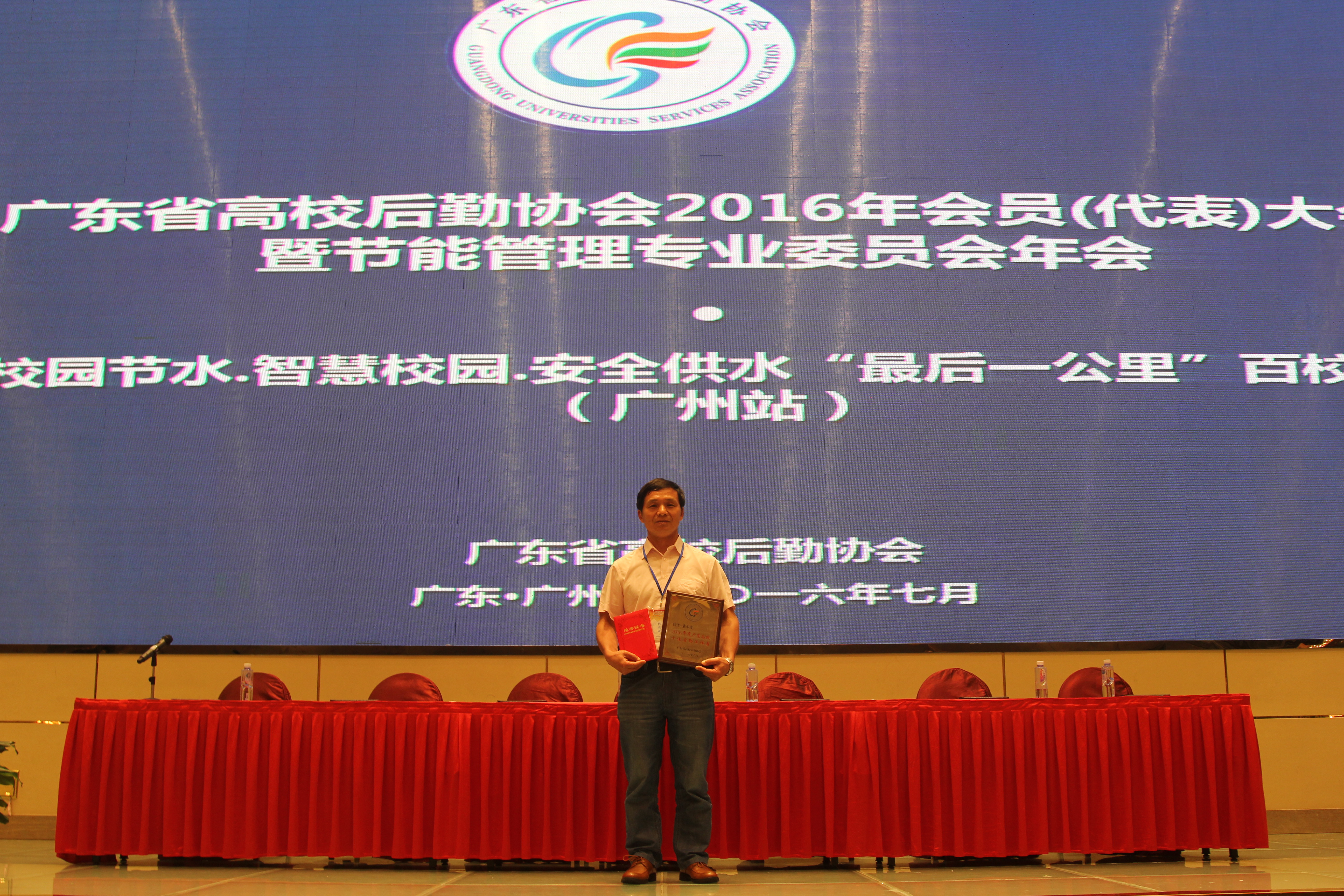 本网讯 近日,广东省召开高校后勤协会2016年会员(代表)大会暨节能管理专业委员会年会,对先进后勤工作者进行了表彰。广东省教育厅党组成员、巡视员赵康,教育部发展规划司后勤发展改革处处长王雪涛等出席会议并讲话。受副校长何传添委托,伟德bv国际体育后勤处处长杨思率队参加会议并作广东省高校节能工作报告,工程服务部袁水发荣获2016年度广东省高校“十佳后勤工作者”称号。