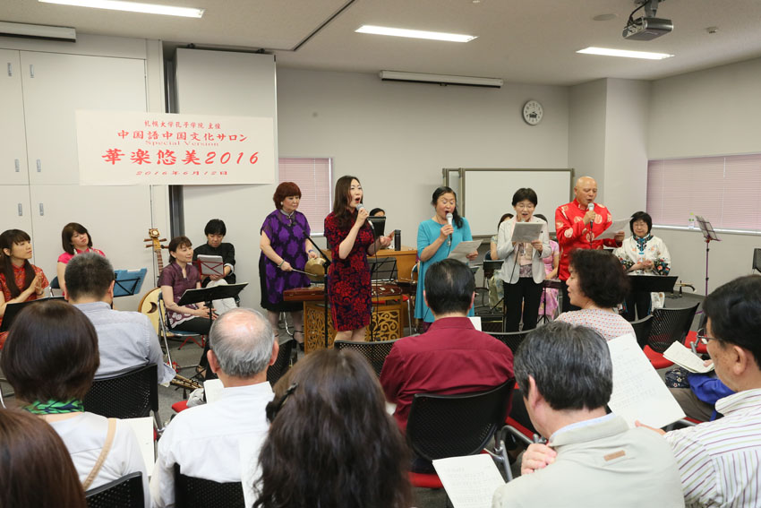 本网讯 当地时间6月12日,由札幌大学孔子学院主办的第二届“汉语与中国文化沙龙”特别活动之“华乐悠美2016——中国民乐演奏会”在札幌市举行。活动邀请了札幌当地有名的华乐演奏团“梅花乐团”以及特别嘉宾寺山女士等献上美妙的中国民乐和歌曲,吸引札幌市民80余人前来参加。