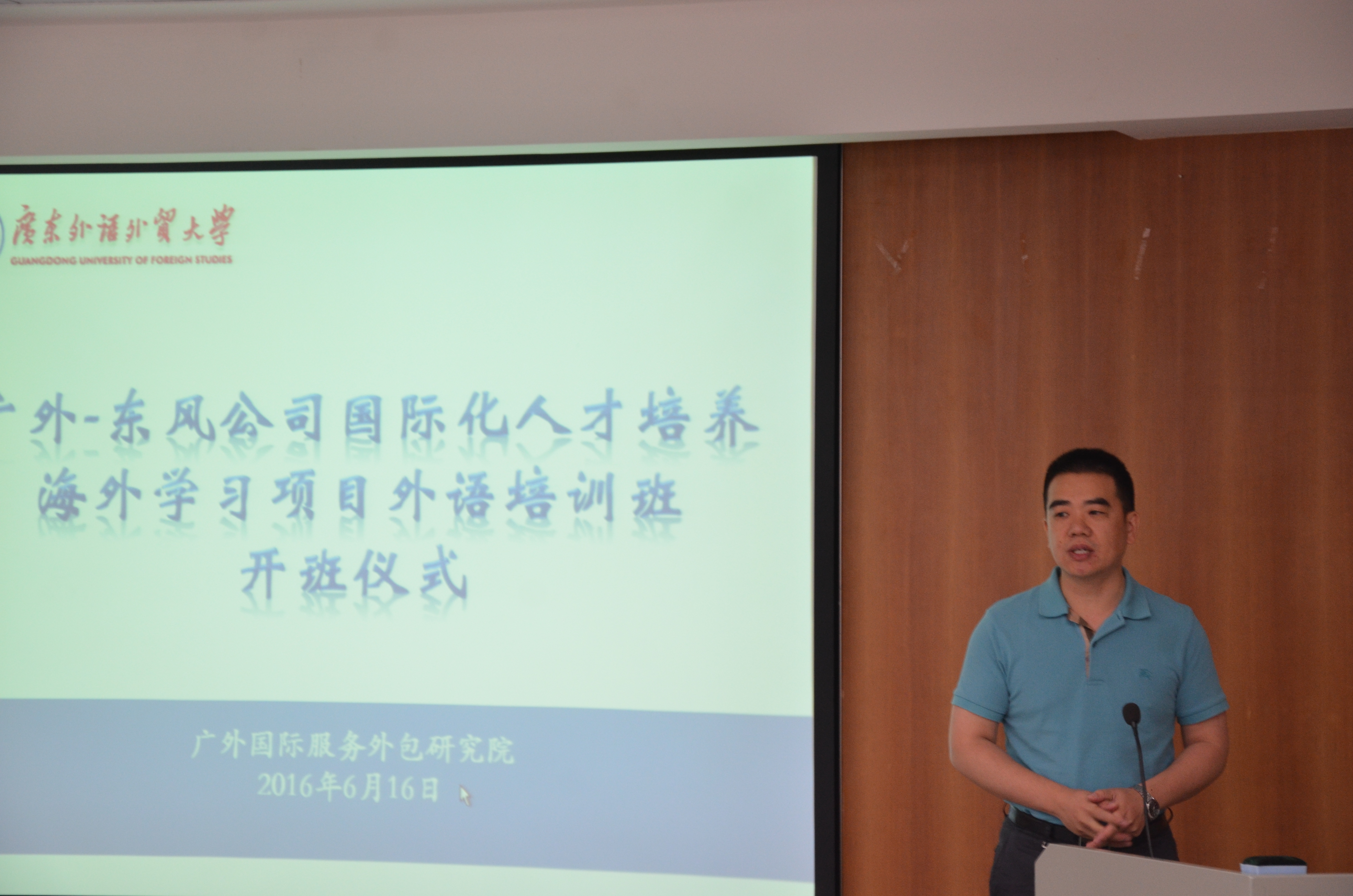 本网讯 6月16日, 伟德bv国际体育,BETVICTOR官网——东风汽车公司国际化人才培养海外学习项目培训班开班仪式在北校区MBA学院举行。东风汽车公司人事(干部)部人才规划处处长罗江波,干部一处主任董楷,培训处主任杨鲲鹏,东风雷诺人事部主任张晓婷,伟德bv国际体育副校长阳爱民,国际服务外包研究院院长林吉双,副院长孙波、陈和,教师代表曾成以及东风汽车公司30名学员出席开班仪式。开班仪式由陈和主持。
