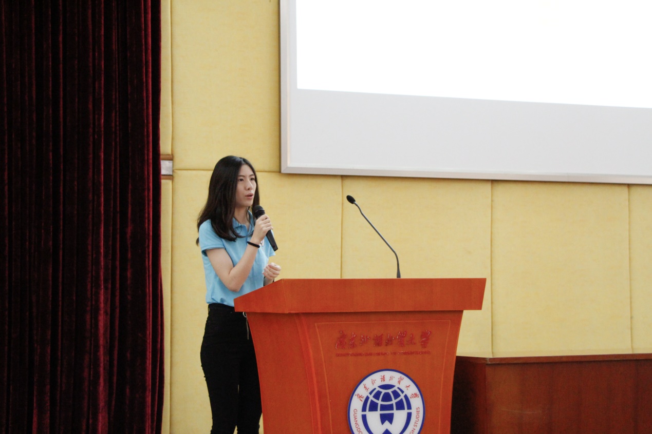 学生朋辈导师代表梁珊珊介绍一年以来的学生朋辈导师工作经历。她将这一年工作的感悟总结为“陪伴、成长、收获”,她表示学生朋辈导师在工作中要学会细致观察、用心沟通、用心经营,并且时常给新生传递正能量,给予正面的引导。2015级新生代表王世锴上台分享了他的感悟。他表示学生朋辈导师在新生的大学生涯中发挥了十分重要的导航指路作用。他代表2015级新生,向所有2015级学生朋辈导师的付出表示衷心的感谢。