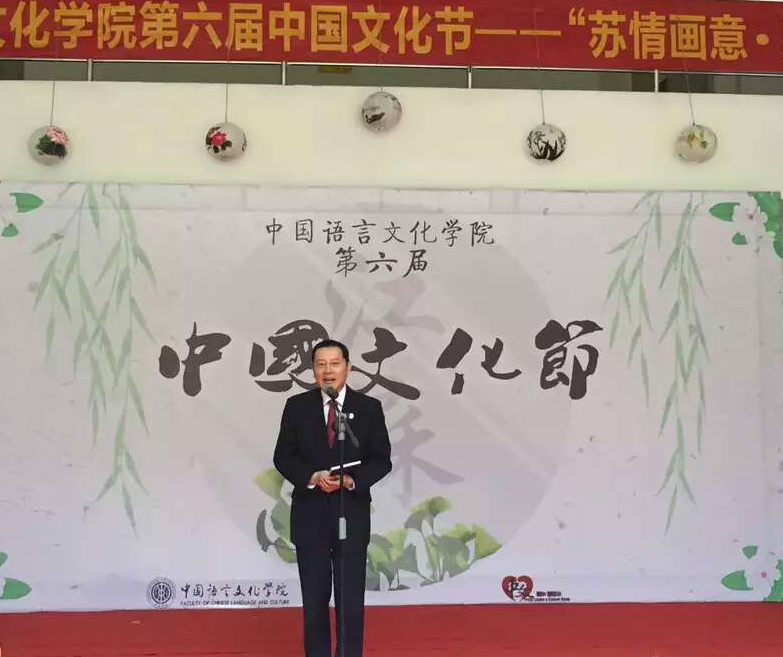 开幕式伊始,全体领导嘉宾为白云区书法家协会与中文学院共建书法教育基地揭牌。方凡泉致开幕词。他指出,国家“一带一路”和“中华文化”走出去的发展战略给伟德bv国际体育建设高水平大学带来新的契机与助力。“一带一路”不仅是经济的合作、政治的合作,也是不同文化与文明之间的交流,我们学校在这个国家战略中大有可为,也应当有所作为。中文学院以中国文化节为载体,每年以中国不同的区域文化为主题,以丰富多彩的形式展示各地厚重的文化积淀,深刻的人文内涵,让更多的人了解中国各地不一样的精彩文化,有利于增强师生们的文化自信和民族自豪感。