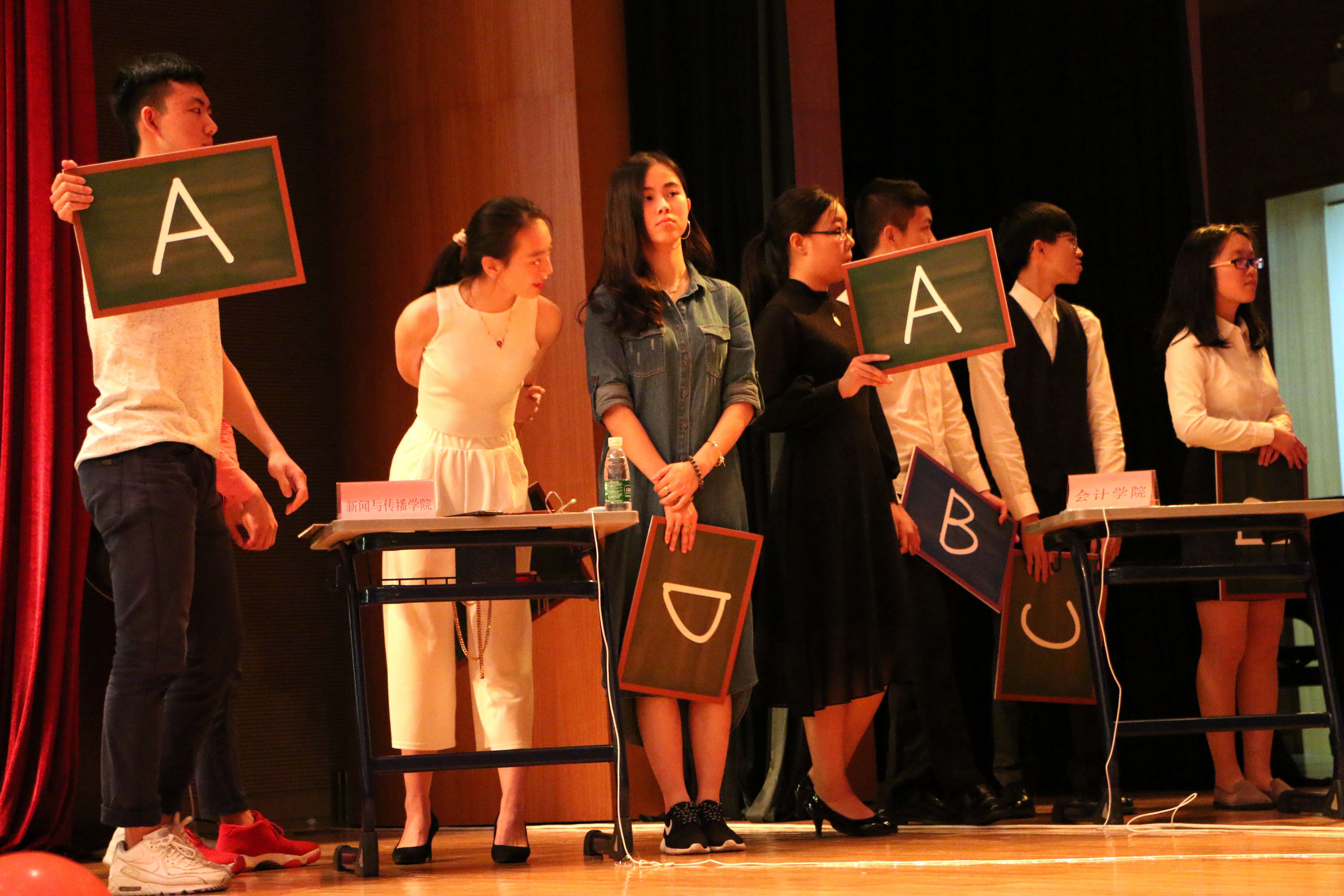 比赛中还穿插了现场观众互动和投票环节,让观众也参与到激烈的比赛之中,现场气氛活跃、观众热情高涨。最终,高级翻译学院、新闻与传播学院、会计学院分获冠亚季军,政治与公共管理学院、法学院、经贸学院获得优胜奖。