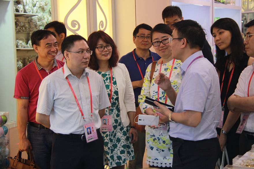 在调研期间,刘海春一行走访了校友企业--广东盈浩工艺制品有限公司展位,详细地了解了企业的运营情况,并与校友就校企在人才培养、实习实践、创新创业等方面合作进行了探讨。