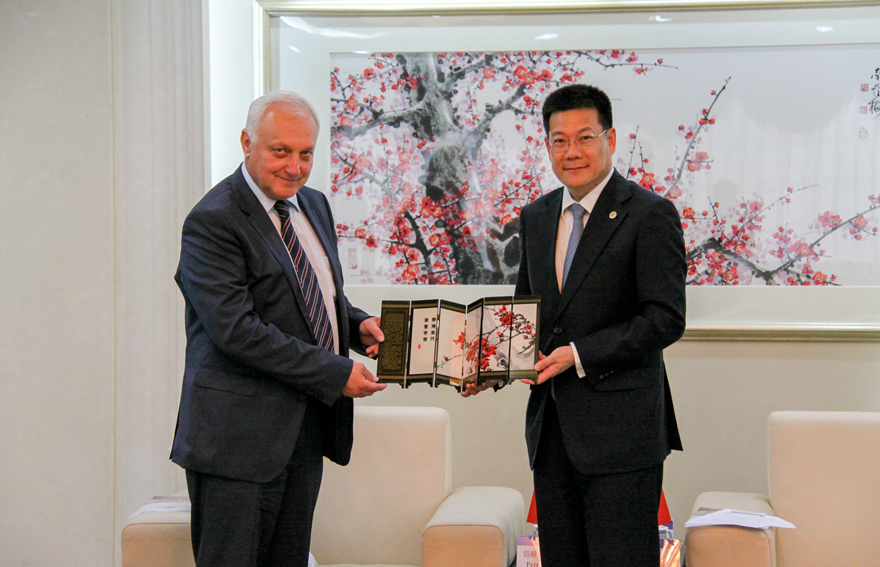本网讯 4月25日下午,捷克南摩拉维亚州教育代表团来访伟德bv国际体育南校区,伟德bv国际体育校长仲伟合、副校长方凡泉等领导会见了代表团成员。在交流会上,双方就各校的教育和国际合作等方面进行了交流和探讨。