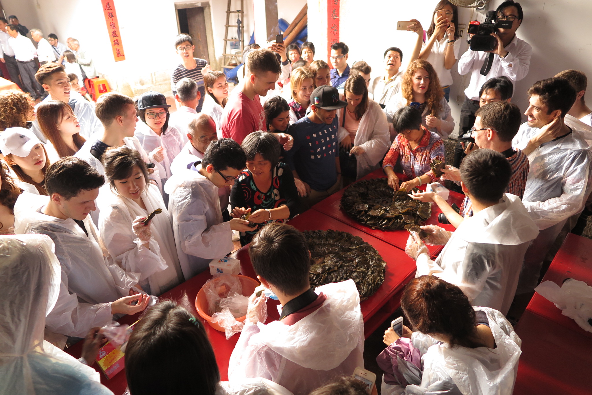 24日上午,留学生们来到螺溪镇,参观该镇的省级文物保护单位五星宗祠。该祠距今有300多年历史的汉族祠堂建筑,属于汉民族祭祀祖先和先贤的场所,是明朝一品京官叶高标的祖祠,主体建筑具有明清时期建筑特点的四合院。留学生们对如此高的门槛以及宗祠的建筑结构十分好奇,还有进屋映入眼帘的一坪草地更是引来他们的阵阵惊叹。