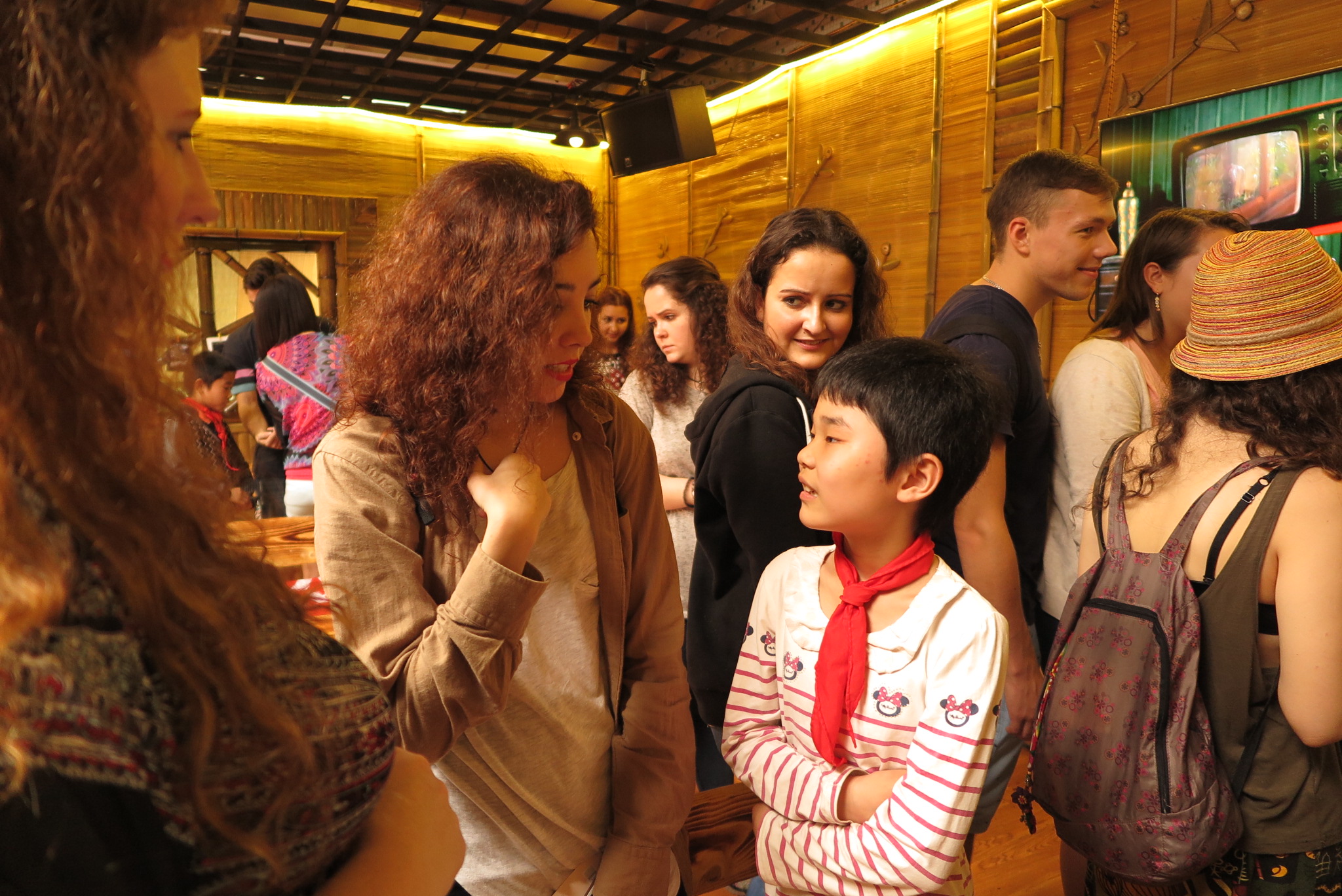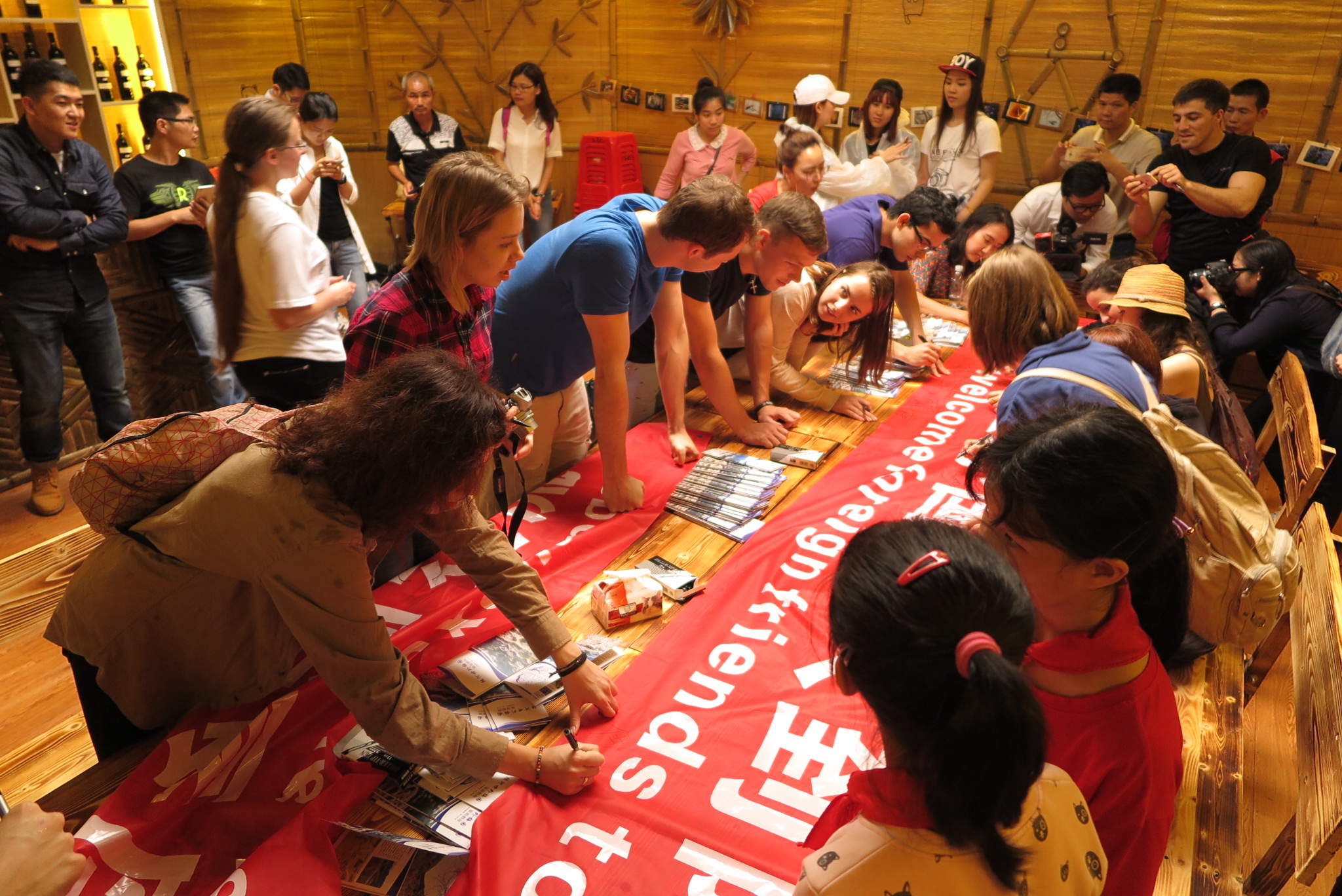 22日晚,陆河县团委副书记邱艳、水唇镇党委书记叶涌华与留学生展进行座谈。叶涌华简要介绍了水唇镇的发展历史和风土人情,并详细的说明了乡镇旅游经济的发展现状和客家文化的传承。南溪中学团委书记、广东省书法家协会会员朱伟煌老师现场挥毫展示中国书法。