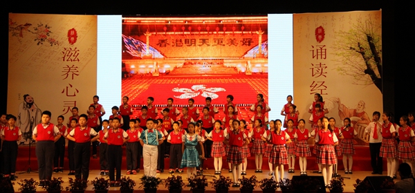 浅吟低唱,百转千回,诉不尽唐诗宋词的千古风韵;诵读经典,对话圣贤,品不完诸子百家的人生智慧。担任评委嘉宾的广东省朗诵协会会长王老师在点评中认为:“一所小学能把诵读活动做到如此高的水平,场面如此恢宏,真是令人难以置信。可以看出广外附小的孩子是多么幸福!”