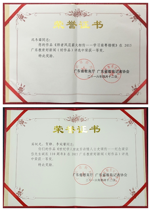 据悉,“2015广东教育好新闻(好作品)评选活动”共计收到作品600多份,经过层层评审,共评选出一等奖作品45篇、二等奖86篇、三等奖126篇、优秀奖136篇。