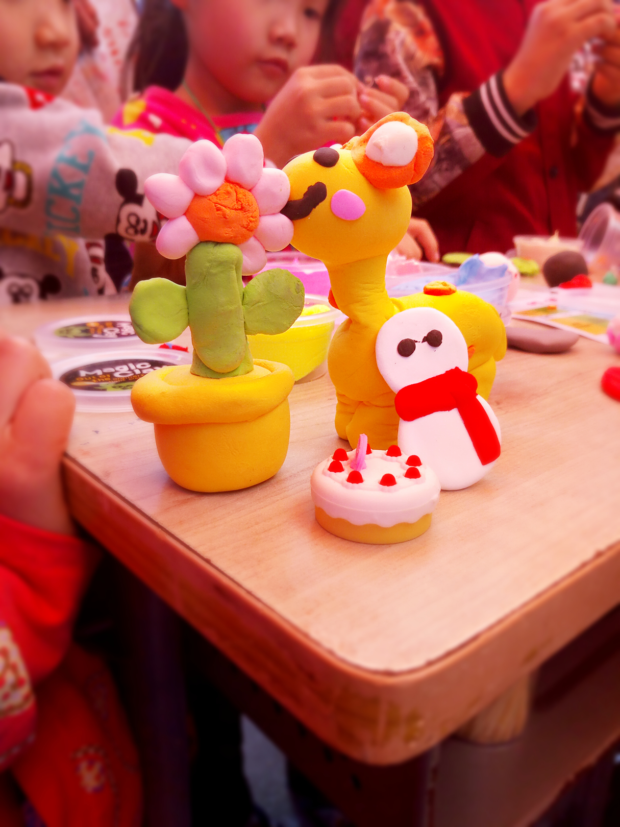 当天共有14个志协、部门提供志愿服务,形式丰富多样,设立的摊位不仅提供人物画像、粘土制作、外语学习、剪纸折花、制作笔筒、法律知识普及、健康护理知识普及等志愿服务,还开展猜灯谜、趣夹乒乓球、你划我猜等小游戏,趣味十足。活动现场十分火爆,其中,经贸学院提供的粘土制作最受小朋友欢迎。许多小朋友带着自己的想象与创意,心灵手巧地制作出可爱的粘土作品。