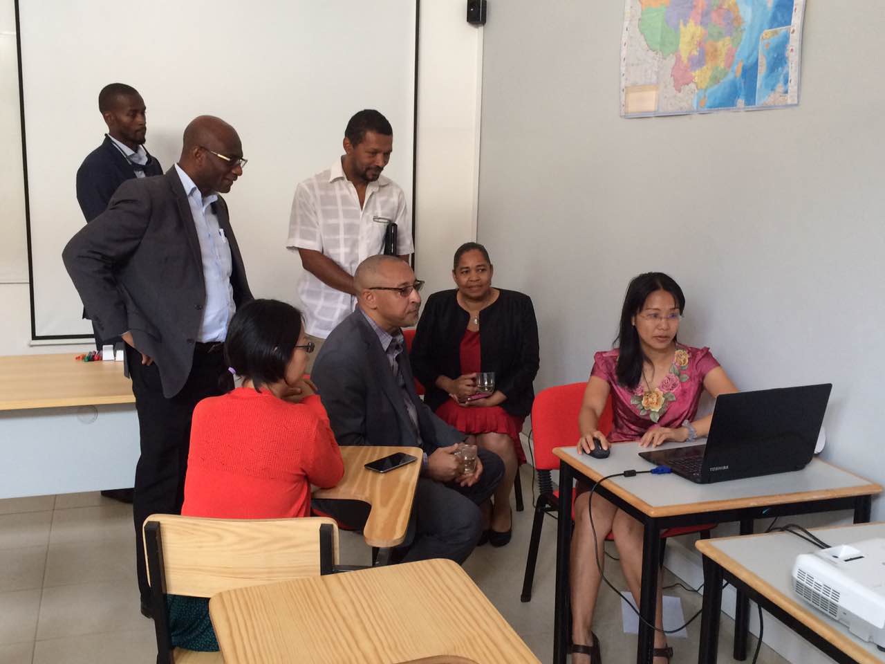 本网讯 正值佛得角与中国友好交流四十周年、佛得角大学孔子学院揭牌成立四月之际,普拉亚时间2016年3月23日上午,佛得角外交部长托伦蒂诺一行到访佛得角大学孔子学院参观。陪同参访的还有佛得角大学校长纳西门托女士、副校长若昂、副校长索尼娅等。佛得角大学孔子学院院长郑庆君带领佛大孔院教师与工作人员接待了外长一行。