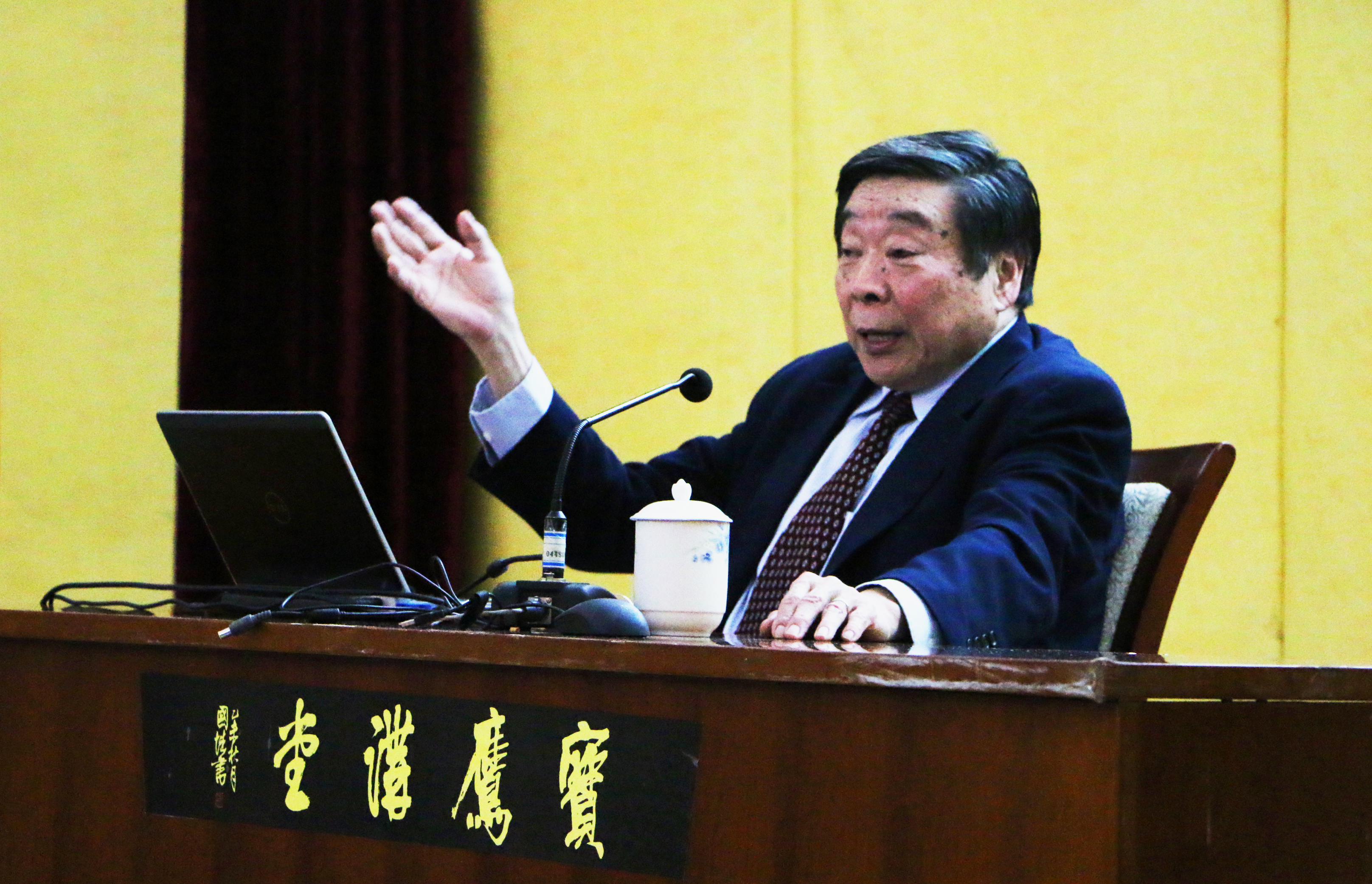 古朴担任讲座主持人。他向马佐平赠送对联以作纪念。