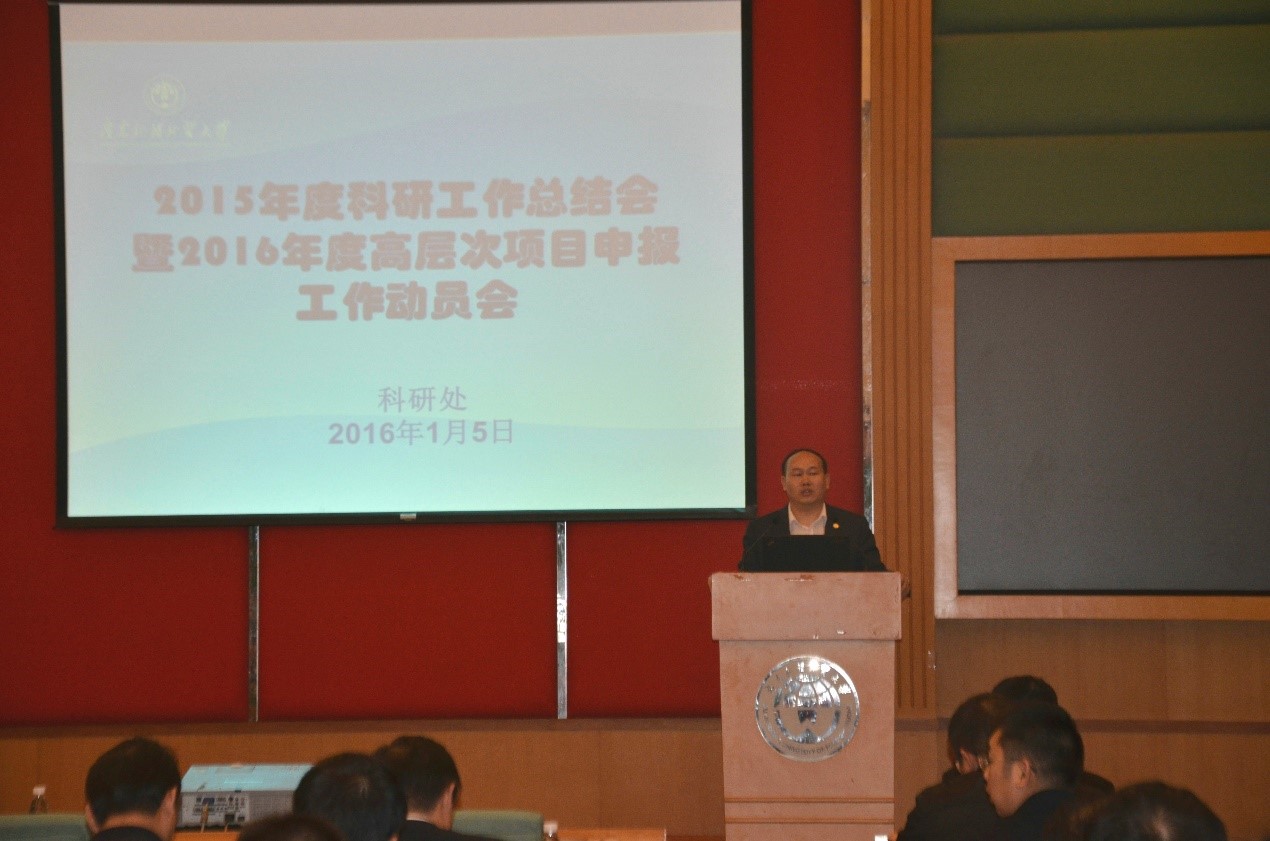 本网讯 为了全面提升伟德bv国际体育2016年国家社科(自科)基金、教育部人文社科项目等高层次项目的申报质量,有效支撑学校国际化特色鲜明的高水平大学建设和一流学科建设,学校科研处于1月5日和7日在北校区行政楼国际会议厅、第三会议室举行2016年度高层次项目申报工作动员会。校长仲伟合、副校长阳爱民、各学院院长、各教学单位教辅单位分管科研工作负责人、科研机构负责人、科研秘书,各校级基地负责人,科研处全体人员出席了会议。会议由阳爱民主持。