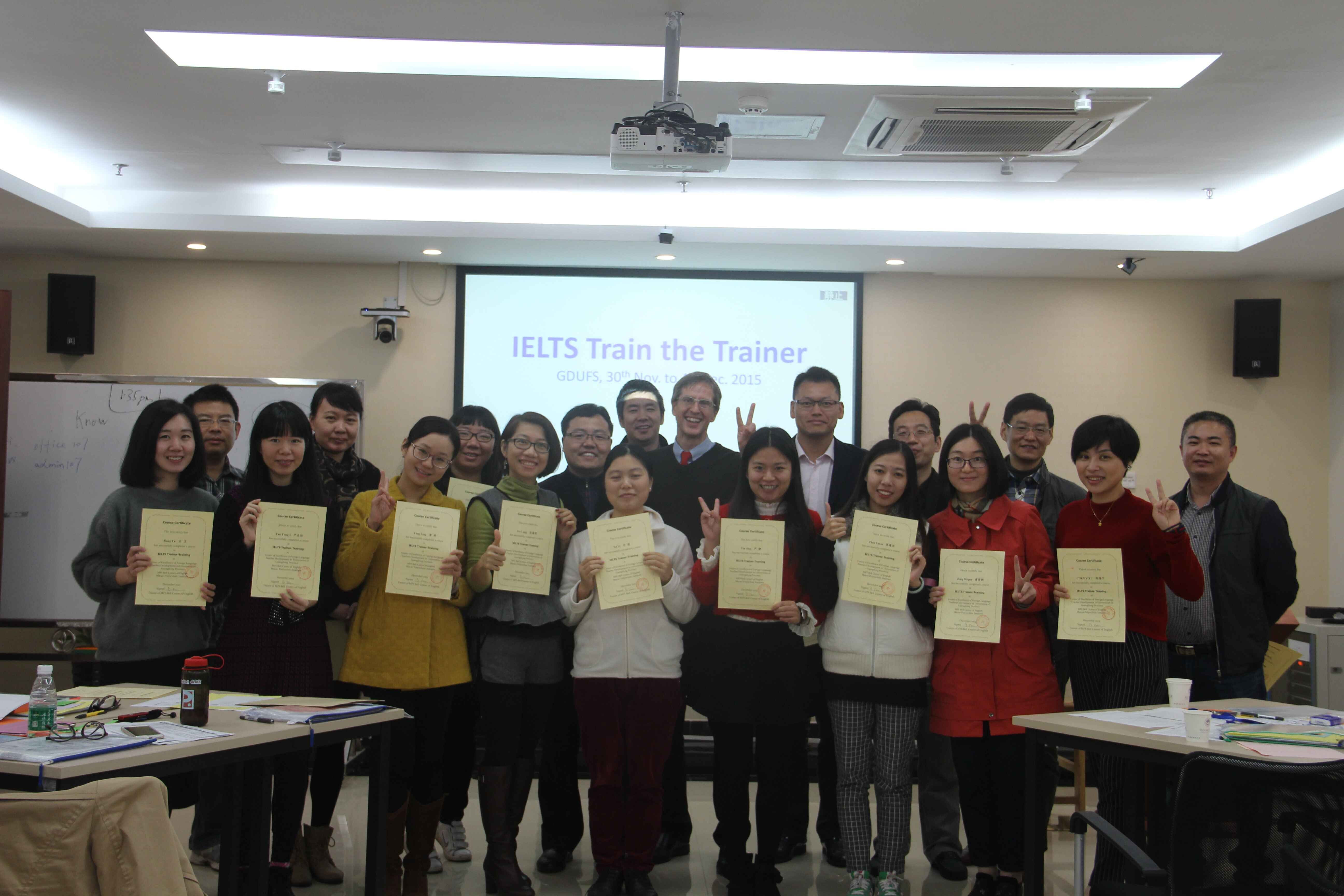 本网讯 近日,由广东省高校外语教师教学发展示范中心与澳门理工学院研发设计的第二期雅思导师培训精品课程(IELTS Trainer-Training Course)在教师发展中心落下帷幕。课程旨在帮助雅思教师更深入了解考试设计及相关教学备考方法,更加有针对性地为考生提供备考支持,吸引了广东、湖南等地10多名高校教师参与。来自伟德bv国际体育商英、英教、继教(公开)学院及附设外校等10名教师也一同参加了本次培训。