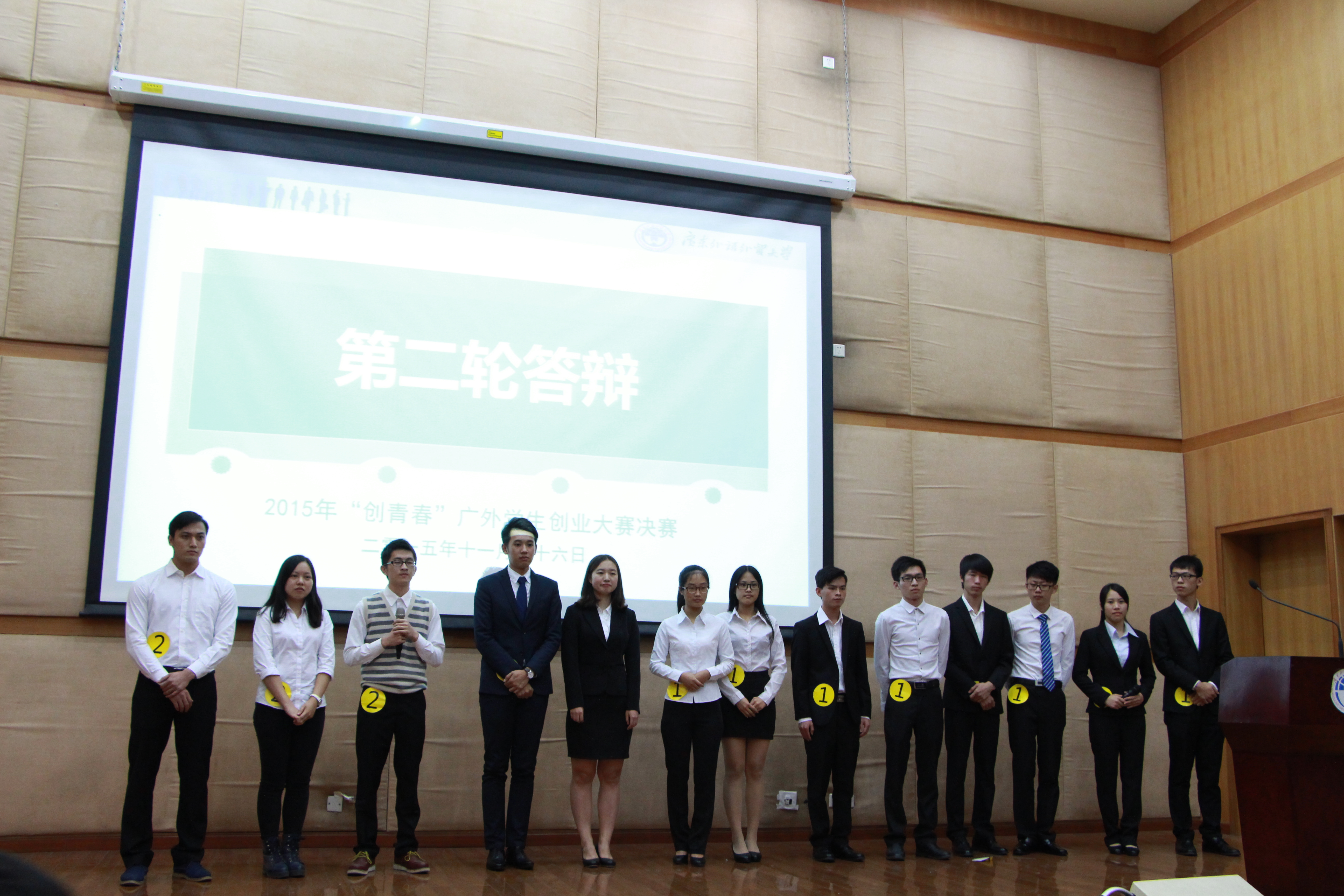 2015“创青春”广外学生创业大赛由校团委、校学生会主办,自今年六月启动以来,得到全校各单位的热烈响应和积极配合。今年6月至9月,各学院广泛发动,积极组织报名和评选,推报优秀作品至校内复赛。复赛阶段,校团委邀请和组织6位相关专业的教授和副教授进行评审和封闭答辩,选拔出的8个创业团队进入决赛公开答辩,角逐特等奖、一等奖和二等奖。此外,决赛邀请校外孵化器的专家和企业家担任评委,同时帮助实现多个获奖作品与校外企业孵化器的对接与落地。