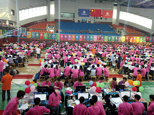 本网讯 10月17日至18日,中国大学生程序设计竞赛在南阳理工学院举行。思科信息学院大三学生林明明、杨焕星和大二学生周厚谦组队代表伟德bv国际体育参赛斩获铜奖。同台竞技的有来自清华大学、北京大学、中国科学院、浙江大学、复旦大学、武汉大学等134所知名高校的735名IT精英。