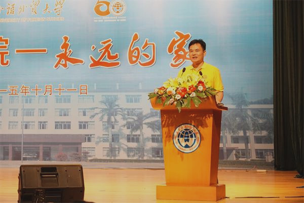 仲伟合上台致辞。作为一名英文人,他对英文学院校友会的成立表示热烈祝贺。他希望校友会的成立能增强校友之间、校友与母校之间的凝聚力,推动学校发展,实现广外建成国际化特色鲜明的高水平大学的目标。