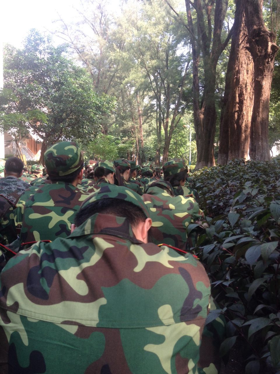盛夏时节,来到广外的人们,一定会迎着树荫和草木香,穿过广外独有的潮湿空气,走过校道,仰望笔直的白千层,俯身细嗅路边小花的芬芳;来到广外的人,也一定会循着那一声声嘹亮的口号来到炎炎夏日照射下的操场,欣赏小绿人笔挺的身姿,感受他们的年轻与朝气,学习他们的坚韧与勇敢吧。操场、饭堂、校道……将每一个坐标剪切成每一段回忆缝补在最美的时光里,军训进行时。