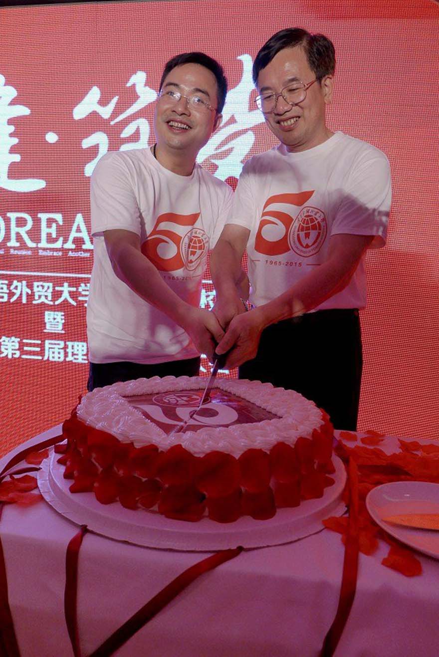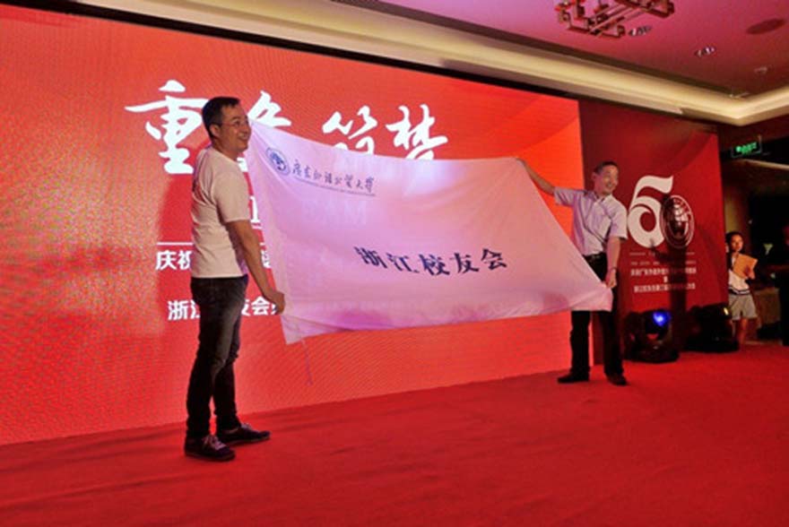 会上,何传添为浙江校友会第三届会长、名誉会长许志鸿颁发聘书。第二届会长金一平将会旗交予新一届会长许志鸿。何传添与许志鸿一起切开浙江校友会为母校50周年生日专门订制生日蛋糕,共庆母校50华诞。