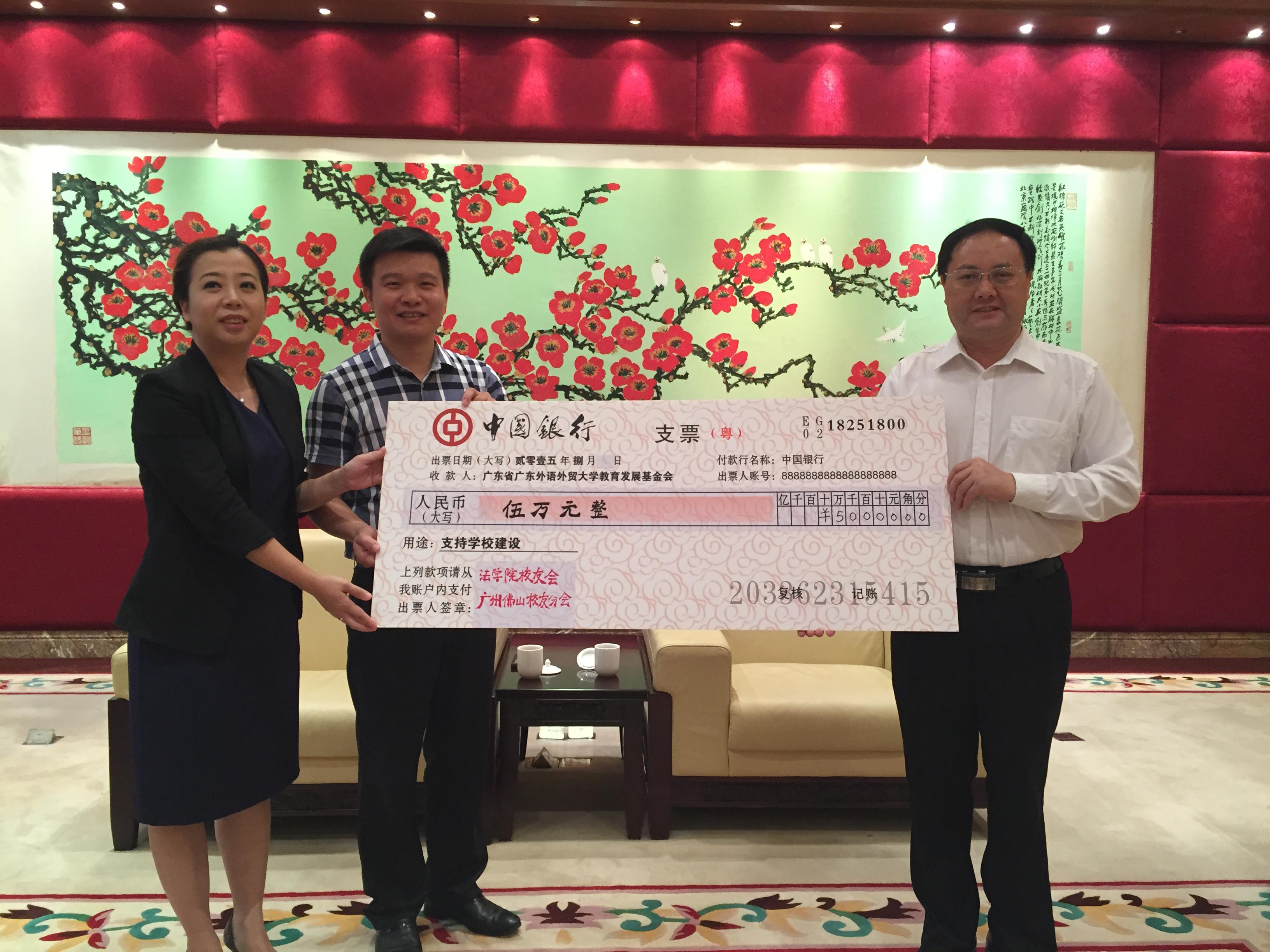 法学院校友会广州佛山校友分会向伟德bv国际体育捐赠5万元