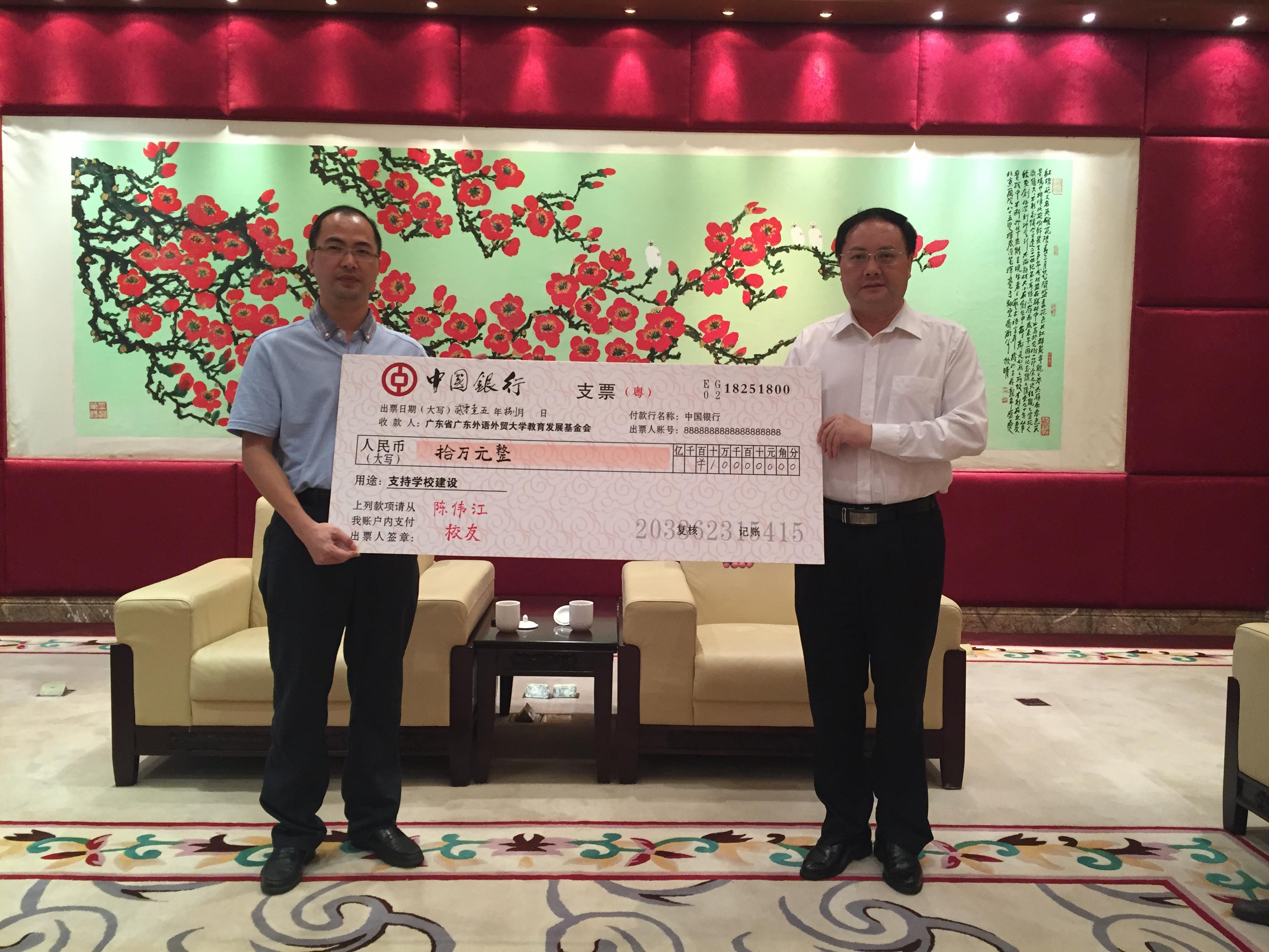 陈伟江向伟德bv国际体育捐赠10万元