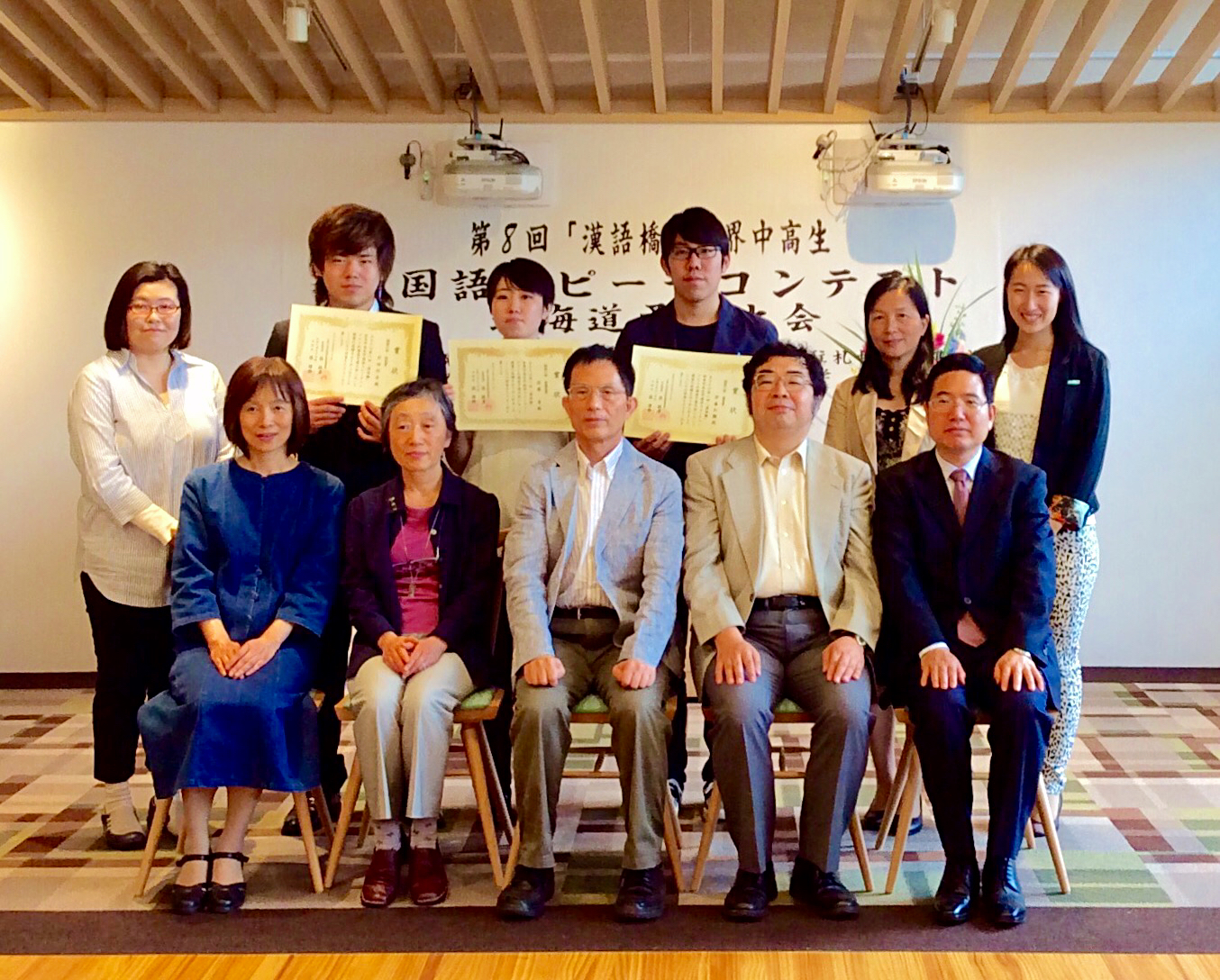 札幌大学孔子学院院长张伟雄为获奖的选手颁发奖状和奖品,并赞扬了选手们的学习态度以及积极性,鼓励他们继续努力学习汉语,充分利用孔子学院这一平台,多了解中国文化与现状。