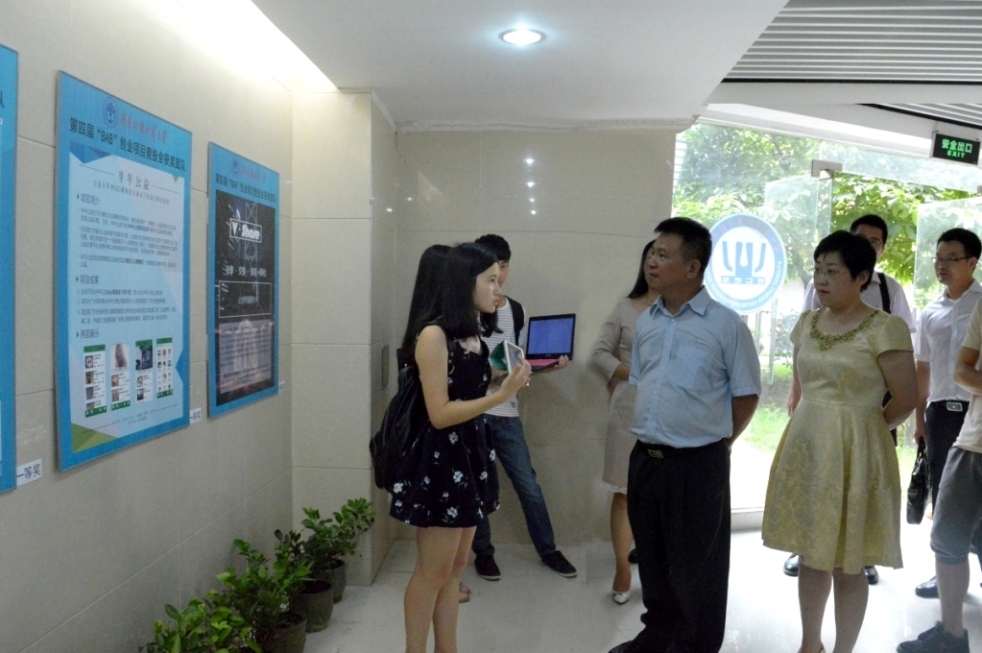 在刘海春等的陪同下,武一婷一行参观了伟德bv国际体育学生创业实践基地,并共同为伟德bv国际体育的“青创空间”孵化中心揭牌。伟德bv国际体育是高校共青团“青创空间”孵化中心首批30个示范点之一,学校严格按照“五个一”(即一个固定阵地、一个稳定服务团队、一套管理和服务办法、一套校内政策支撑制度、一套校外市场支撑制度)的标准创建示范点,在大学城校区南苑10栋学生宿舍一楼的创业实践基地设置“青创空间”,为在校大学生提供办公场地、导师辅导、信息咨询、辅助培训、专利申请和代理登记等全方位的创业服务。