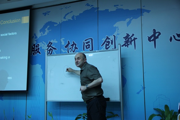 本网讯 6月25日,由广东省外语研究与语言服务协同创新中心与高级翻译学院共同举办的“云山跨学科翻译讲堂”第一讲开讲。英国杜伦大学翻译学专家谢尔盖•丘列涅夫(Sergey Tyulenev)受邀做客伟德bv国际体育,为师生带来了一场题为“Studying Translation as an Interface between Language, Culture and Society”的英文讲座。讲座由高级翻译学院副院长邢杰博士主持。