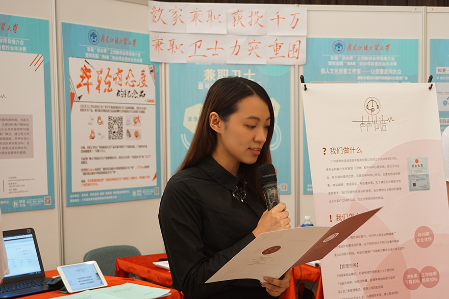 专注于线上互动营销的印第安传媒工作室、制作出“如果广外下雪”系列明信片的想麦团队、致力于成为“兼职界的京东”的兼职卫士团队、推广过“广外棒球衫”的伯人文化团队、大学生技能分享社交平台知更……各支创业团队市场定位明确,竞争优势突出,不仅有好的创意,更有广阔的市场空间。