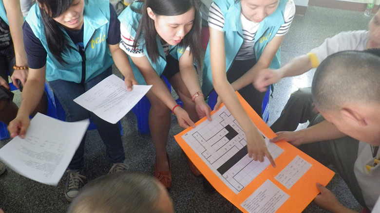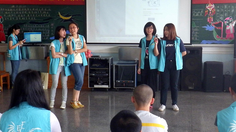 由于不少学员从小辍学、没有足够的文化知识基础,志愿者们特地亲手做了识词小卡片,通过填词游戏的方式教他们一些简单常用的单词,并且纠正他们的英语发音。在此过程中学员们积极提问,认真做笔记和努力学好发音。而在“戏曲知识知多少”环节,志愿者和学员们都各尽其能,背诵、提示、刷题,配合愈发默契。在边学边玩的过程中,学员与志愿者逐渐熟络、成为朋友。