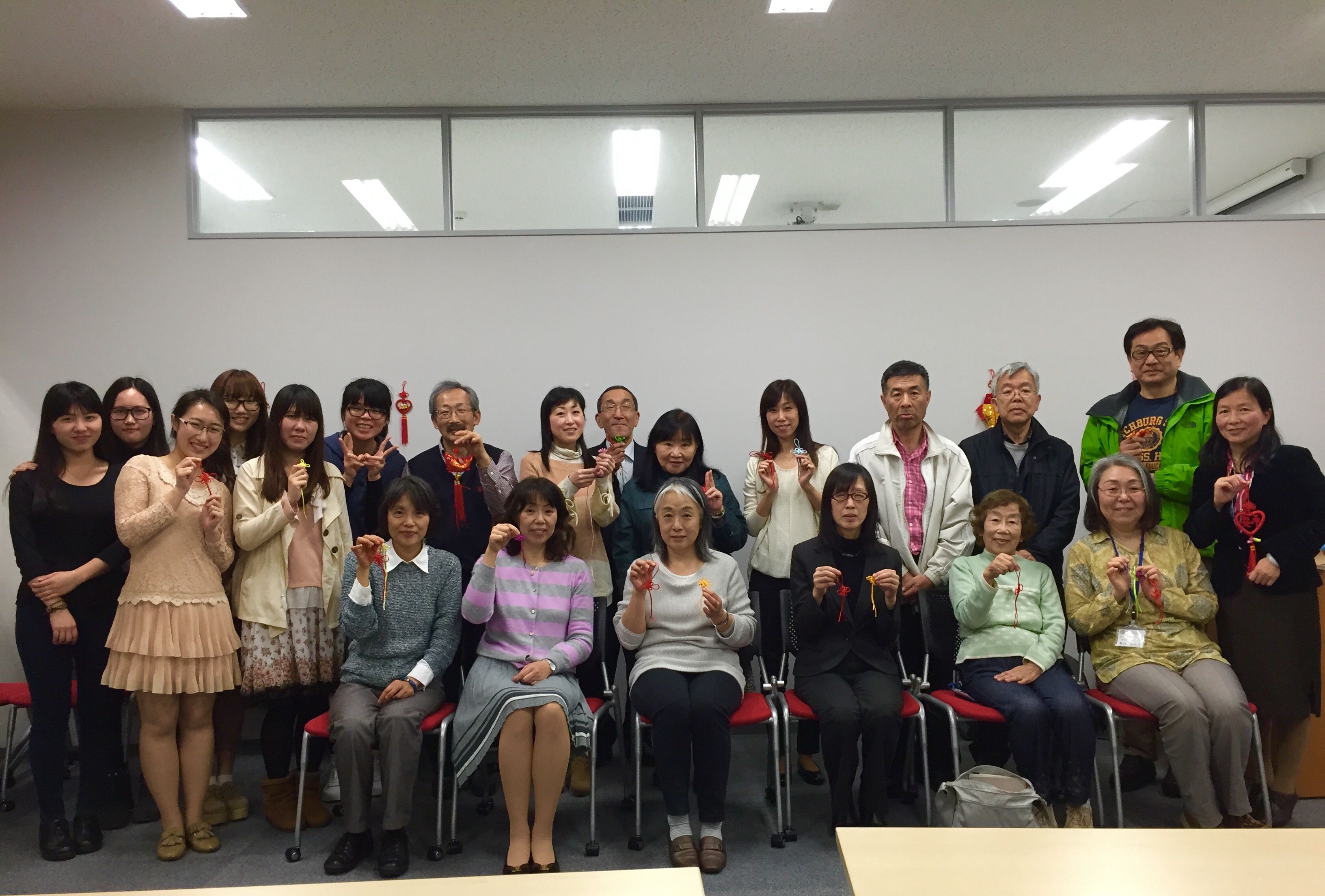 在“中国文化与中国结”文化沙龙活动中,余六一从中国结的起源到其蕴含的文化内涵,做了详细介绍,并与学员互动讨论,气氛非常活跃。随后,学员们亲手尝试中国结的制作,大家按自己喜爱的颜色挑选了绳子,在孔院汉语教师李西子的指导下,用心编织。与此同时,还与札幌大学的中国留学生进行了交流。