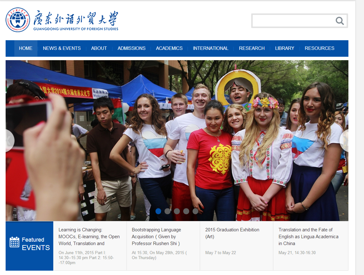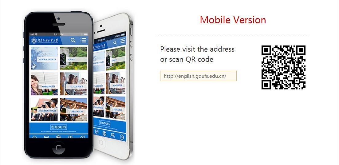 改版后的广外英文网(http://english.gdufs.edu.cn/ )针对不同终端跨屏自适应显示,无缝对接电脑和手机等不同终端,打造全媒体数字化网站,提供视频、广播、图文等多媒体报道,构建广外在Web3.0时代的数字化国际新形象。网站分别以校内重大新闻、国际交流访问、校园学习生活资讯、留学生教育等为主要内容推出九大特色版块,同时设专栏推广伟德bv国际体育高层次人才最新科研、教学动态的 “Point of View”(“大师讲坛”);介绍外教、留学生在中国的生活的 “International Faces of GDUFS ”(“外国人在广外”);介绍广外校友、学子在海外留学专栏“study abroad”(“广外学子看世界”);并建设专题“50th Anniversary”(建校50周年)与“广外50年”专网( http://gw50.gdufs.edu.cn/ )中英文同步预热伟德bv国际体育50周年校庆。