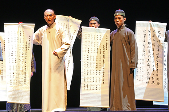 甲午战败,正在京城赶考的康梁策划了在京的十八行省公车联名上书皇帝要求变法,“同意康有为先生上皇帝书”的呼声响彻天地,终为一纸“已成定局,无可挽回”所扼杀。康梁力争变法,舞台的一端是光绪帝在给康梁任命赐官,共同为富国强兵的梦想奋斗;而舞台的彼端是太后盛怒,下令缉拿康党。“康梁不能死,变法不能停”,谭嗣同仰天长笑“去留肝胆两昆仑”,为变法流下第一滴血。不少观众受到感染,随着台词落泪。