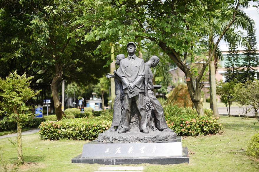 “广外工农兵大学生纪念园林”,又名五莘圃。“五莘”即取五届工农兵莘莘学子之意,记录从1972至1976年五届工农兵学子广外求学历史。由72、73级及其他各届工农兵校友集资建成,于2011年正式揭幕。五莘圃坐落在广外北校区云山会堂身侧,与图书馆隔道相望。一方新圃,承载着一段久远的岁月、一种历久弥新的桃李之情。