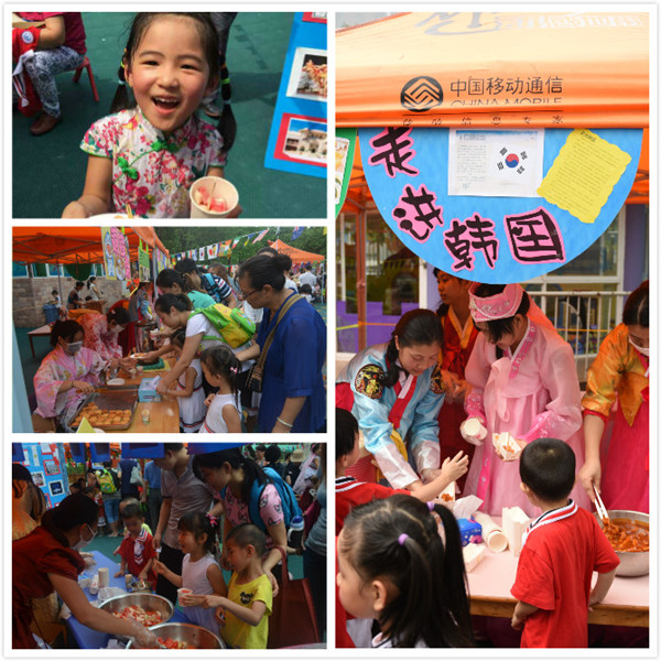 5月29日,广外幼儿园和广外教师发展中心联合举办的国际文化嘉年华暨庆"六一"活动,活动现场热闹非凡:随处可见的各国的国旗和彩旗,穿着各国民族服装的老师,还有各国特色美食摊位。小朋友们每人都领到了8张券,凭券即可品尝美食。让孩子们在美食之旅中感受世界文化,这几乎成了广外幼儿园每年“六一”的王牌节目。