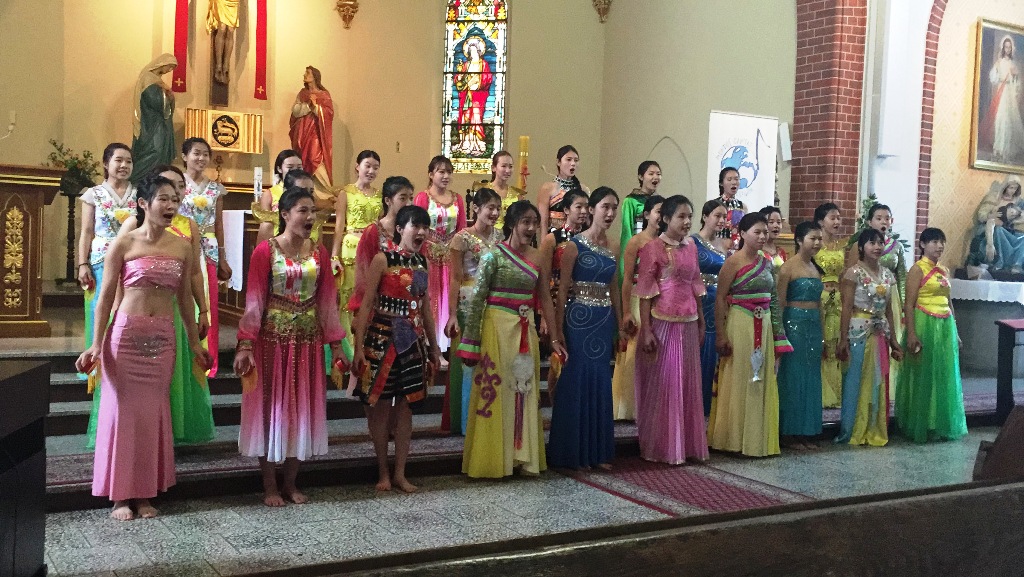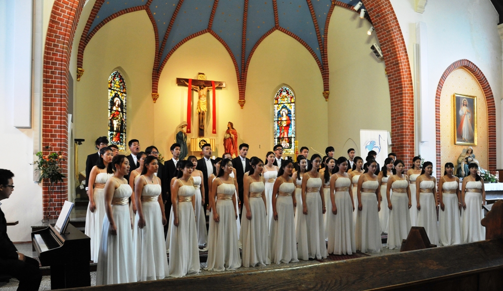 vivace合唱团分别参加了民谣组以及宗教组的比赛。民谣组参赛的作品是两首我国现代女声合唱作品《天湖——纳木错》以及《撒哩啰》,这两首作品属于难度极高的作品,其中《天湖——纳木错》包含了十二个声部,该作品取材于西藏民族元素加之运用现代创作手法,合唱团精准的演绎把中国文化展现得淋漓尽致,评委及现场的中国留学生都给予了高度评价,演唱完毕时,宁静的教堂响起了雷鸣般的掌声,许多观众情不自禁站起来用热烈的掌声向伟德bv国际体育队伍致敬。