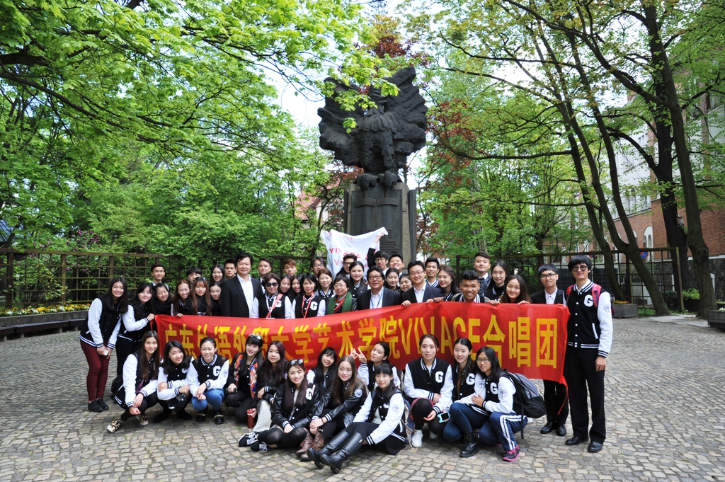 为了给艺术学院大多数学生提供国际化艺术交流与竞技的最高平台,向世界展示伟德bv国际体育艺术实践教学的最高成果,拓展学生的国际视野,提升伟德bv国际体育音乐办学的社会美誉度,艺术学院在大学领导及各职能部门的大力支持下,全院上下通力合作,选派了经验丰富且屡创佳绩的张彬教授任合唱指挥,选派毕业于美国朱莉娅音乐学院的外教、钢琴教师淦楠任合唱伴奏,由党总支书记朱珍葶任领队、副院长罗金燕任团长、音乐系主任杨健生担任团长助理的管理团队,学生经过自愿报名和考核后,接受了包括寒假在内为期近半年的严格训练,克服了诸多的困难,最终全团50人在广外校庆50周年之际首次组织合唱团走出国门唱响肖邦的故乡,获得了建院以来的最好成绩,以实际行动庆祝校庆。