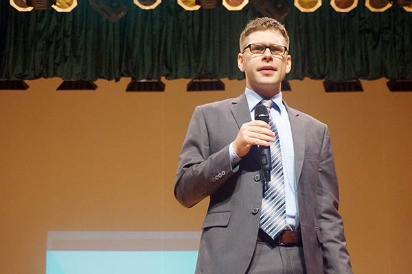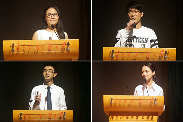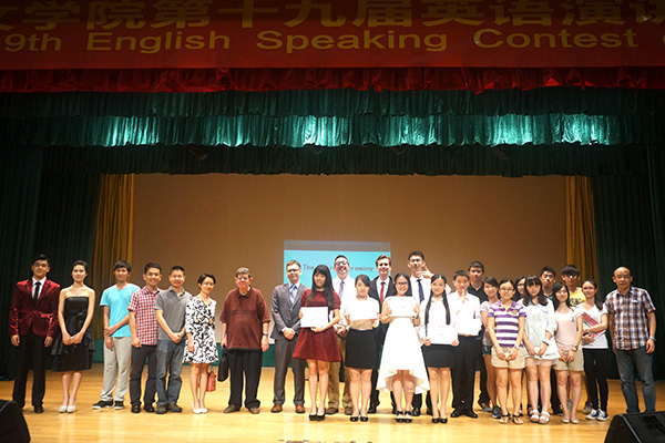 本网讯 5月14日晚,英文学院第十九届英语演讲大赛在六教报告厅举行。十位参赛选手用各自精彩的表现为观众呈现了一场视听盛宴。最终,黎博豪同学凭借着幽默风趣的演说和敏捷的思辨能力摘得桂冠。
