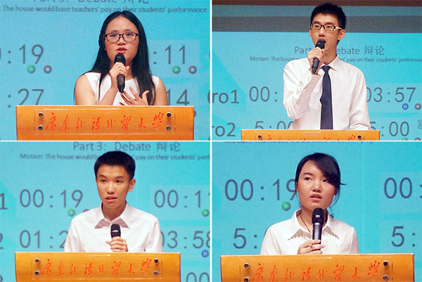 经过前两轮的激烈比拼,六位选手顺利进入了最后的辩论环节。本次辩论的主题是“中国是否应该使用绩效工资制度。”正方认为,绩效工资是教师提高自己执教水平的一种动力,能给予教师激情,是目前来看相对公平稳健的一种制度;反方则认为,教师的天职就是育人,这一做法反而会增加教师的压力,起到反面效果;并且由于学生素质差距较大,绩效工资的评判标准难保公平。