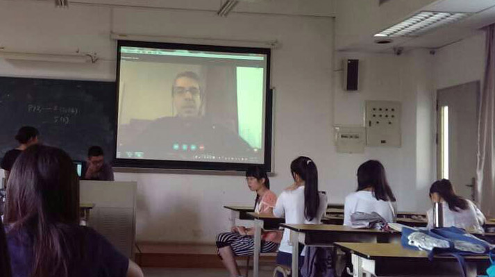 Sicora博士有二十多年的社会工作实践经历,具有丰富的工作经验,学术成果丰硕。他首先向同学们介绍意大利的基本情况、概述老年社会工作在意大利的发展状况,分享了他的两个社会工作经历。跨国网络教学对于同学们来说是一个新鲜事物,加上Sicora博士渊博的知识、开阔的眼界、丰富的经历经验及生动有趣的讲述方式,在场学子十分专注认真地听课。