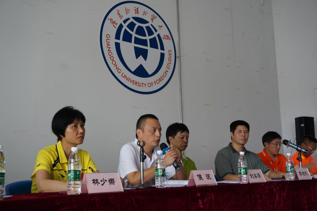 又讯 同日,“广州市第九届大学生运动会羽毛球比赛联席会议”以及裁判员大会在广外南校区体育馆召开。广东省教育厅体卫艺处副处长候波、组委会负责人刘奕涛、裁判长李森、校体育部主任林少娜、体育部书记李旭武、保卫处朱永海以及体育部副主任丘乐威、王鲁江出席了本次会议。