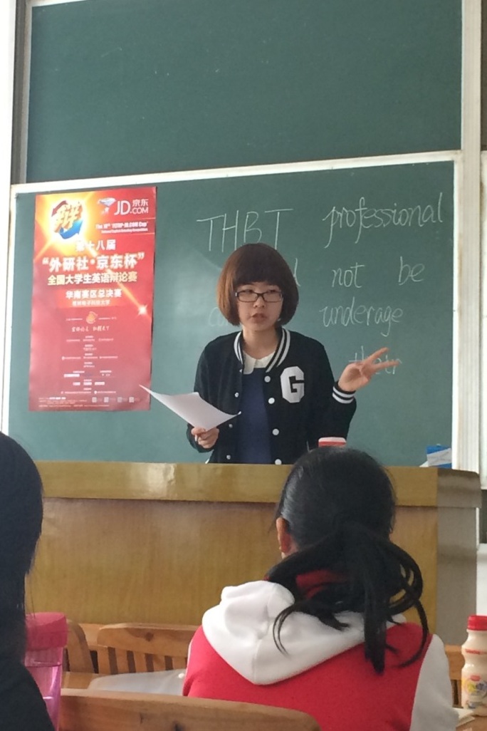 本网讯 4月26日下午,第十八届“外研社·京东杯”全国大学生英语辩论赛华南赛区比赛在桂林电子科技大学举行决赛。来自广西、贵州、海南、福建、江西和广东、港澳61所院校的辩手参加比赛。伟德bv国际体育德思英文辩论队成员林韬杰和王子怡在王欣老师的带领下,双双荣获一等奖和“最佳辩手”称号,晋级5月中旬的全国总决赛。同时,作为赛事循环赛主裁,王欣老师亦成功晋级,列席Grand Final(总决赛)评委席,作为5大评委之一对大赛总决赛作出最终裁判。