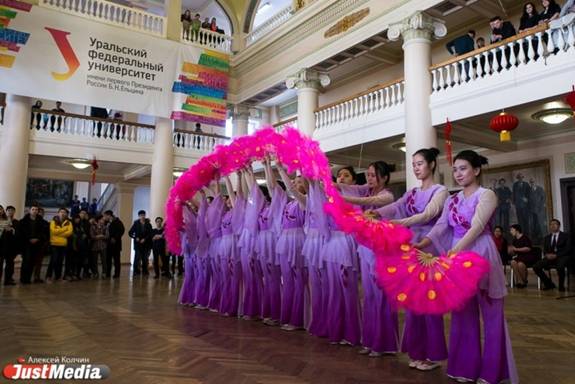 2月17日是俄罗斯乌拉尔联邦大学春季学期开学的第二天。学校主礼堂大厅张灯结彩,装饰一新。由孔子学院主办的充满异国风情的中国新年联欢活动,吸引了很多普通学生和汉语爱好者的目光。