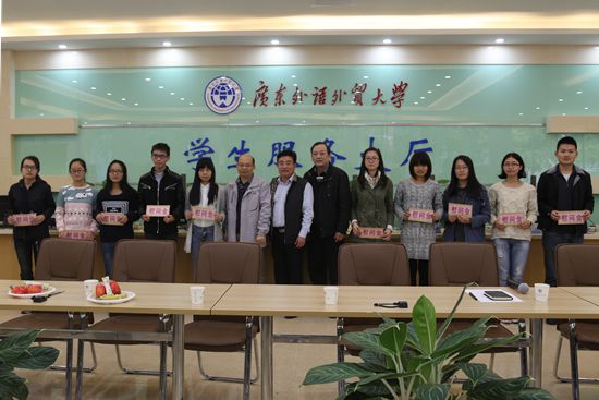 茶话会结束后,校领导为留校学生派发慰问信封并合影留念。