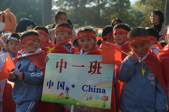 本网讯 12月31日,广外幼儿园迎来了第二届运动会暨国际文化体验活动,全体师生及家长参加了活动。教育集团总经理孙建军,广外附中小校长吴玉爱,家长代表、人事处处长谢文新以及幼儿园退休教师等嘉宾出席并观看了开幕式。