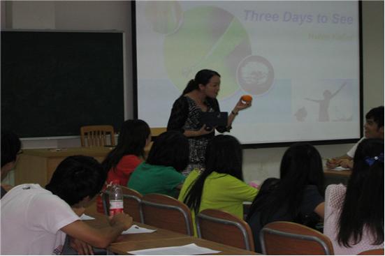 凭借着在教学方面的优异表现,曾丹代表伟德bv国际体育参加了2011年的全国大学英语教学大赛,并一路过关斩将,获得了全国亚军。但是现在回忆起当年的比赛,曾丹最先提到的是自己在那场比赛中发现了自己与其他老师之间的差距。“就像拿放大镜、显微镜来放大自己的缺点那样。”虽然跟冠军的差距只有零点几分,但是曾丹很清楚地认识到自己和第一名之间的距离并不是这几分可以体现的。她提到,自己非常清楚自己在语音语调、引导学生的模式、知识结构方面都还有需要提高的地方。