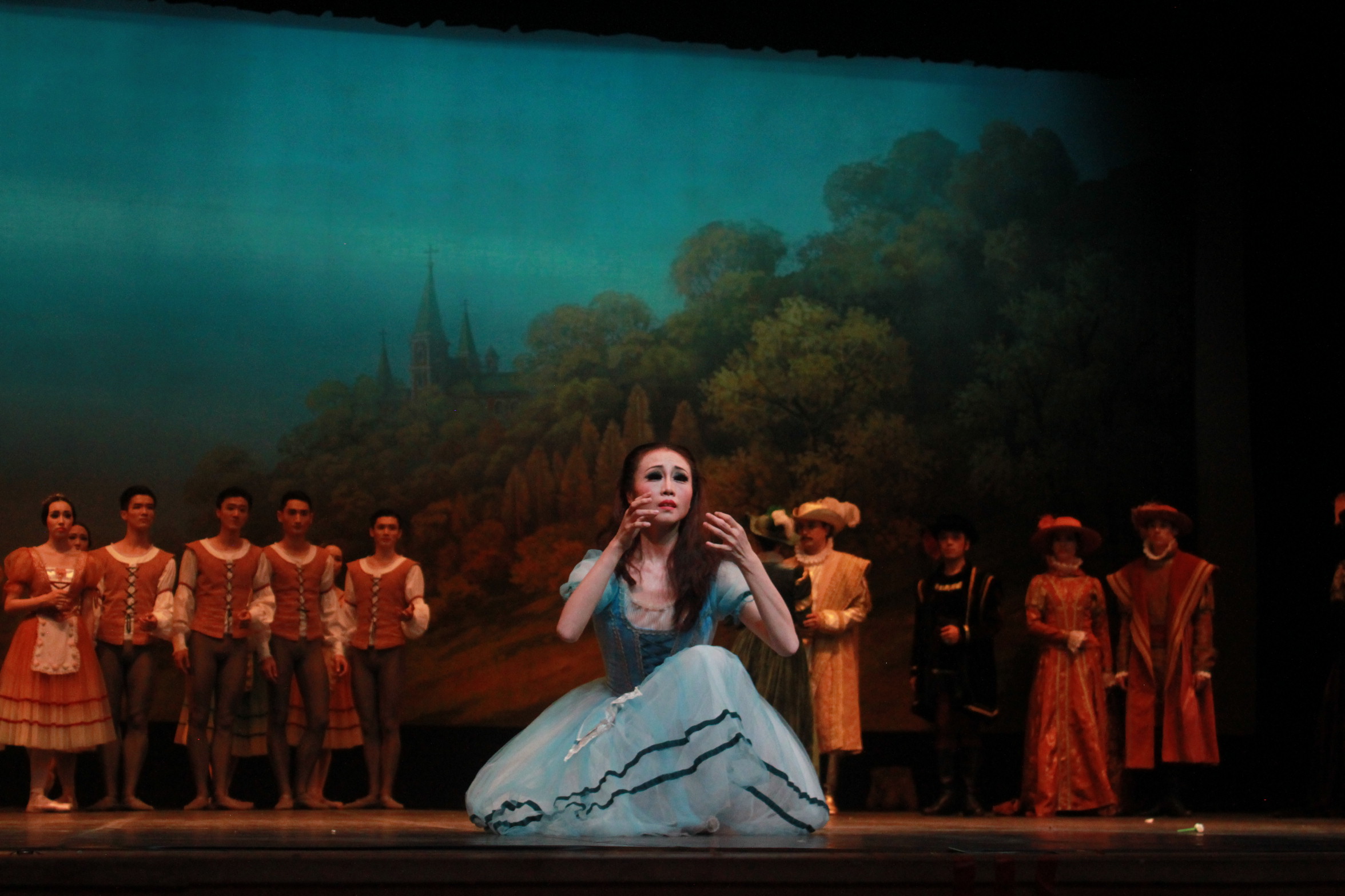 轻快明亮的音乐响起,幕布缓缓拉开,充满田园风光的第一幕开始上演。英俊的伯爵阿尔伯特乔装成农民到乡间游玩,并与爱跳舞的吉赛尔相遇,相爱。同样爱恋着吉赛尔的守林人希来里昂无情地揭穿阿尔伯特的真实身份。又知道阿尔伯特已订婚后,吉赛尔悲怆欲绝,以急速的音乐,快速跳跃的舞步表现疯狂崩溃的情绪,最终气绝身亡,离开人世。