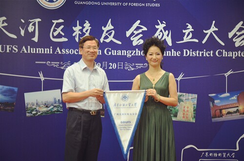 首任天河区校友会会长马缨(83级英语专业)紧随其后发表了讲话。她承诺,将竭尽全力履行会长职责,做好天河区校友的服务工作,将更多在天河的广外人紧密地团结在一起。她希望借助天河校友会这个平台,加强和其他兄弟校友会的合作和交流,同时激发校友热情,汇聚校友才智,为明年校友齐聚母校,共襄广外五十年华诞盛举尽绵薄之力。